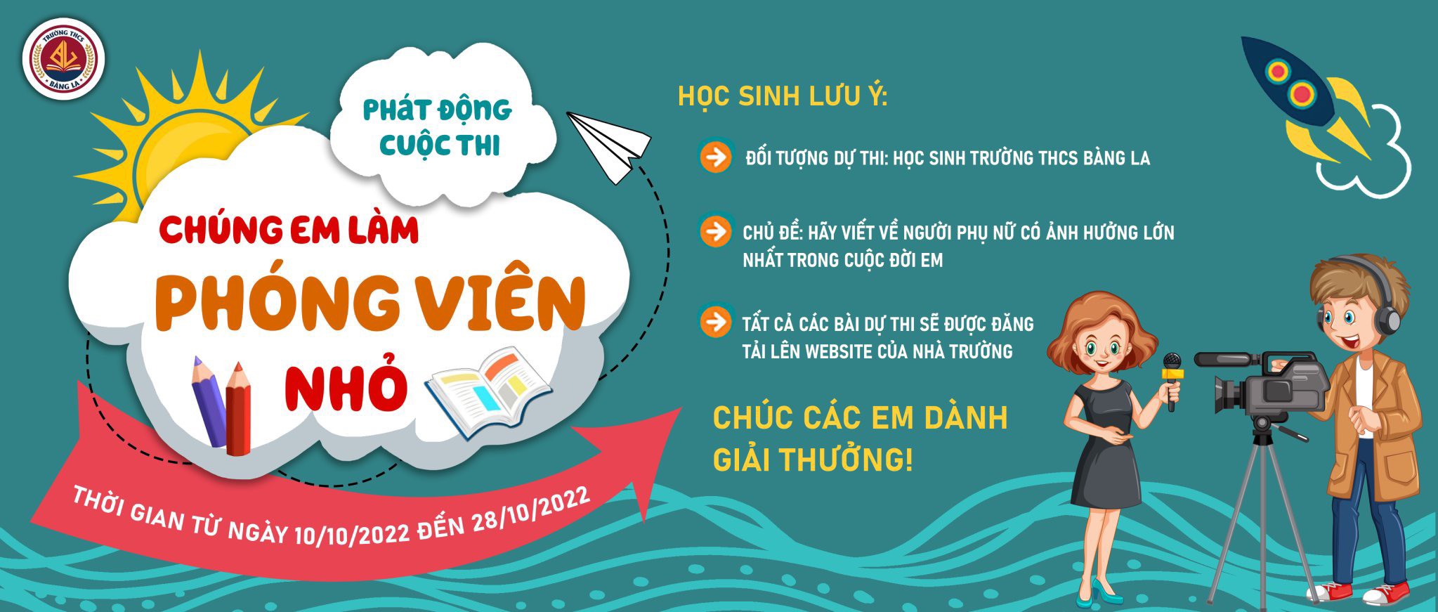- Bài dự thi không đưa lên báo chí, truyền hình hoặc mạng xã hội khi Ban Tổ chức cuộc thi “Chúng em làm phóng viên nhỏ” (năm 2022) trường THCS Bàng La chưa công bố giải thưởng.