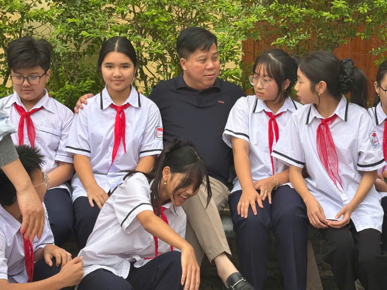 Trong chuyến trở lại lần này, anh tiếp tục tặng nhà trường thêm một cây Phượng vỹ mới giữa sân trường – gửi gắm niềm tin, tình cảm và khát vọng cho thế hệ kế tiếp. Sau khi trồng cây, anh đã trò chuyện thân mật cùng các em học sinh, kể lại nhiều kỷ niệm thuở còn ngồi trên ghế nhà trường. Anh cười hiền hậu, hỏi:
